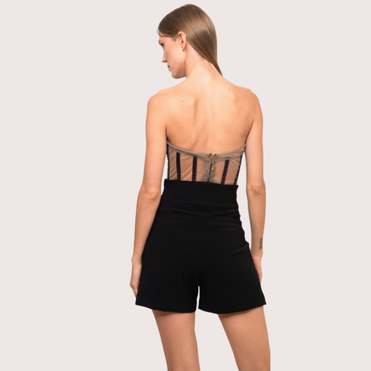 • Black sheer bodysuit with long sleeves on a model against a plain background, featuring a 'Hot Sale' tag.