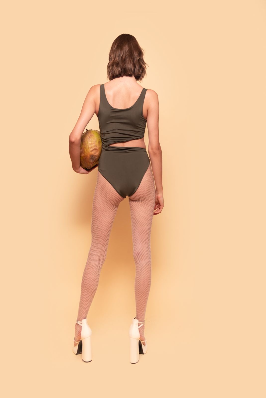 Minimalista y audaz, este diseño de una sola pieza con escote tipo keyhole y cut-out lateral enmarca la silueta con sofisticación. Ideal para un look resort contemporáneo y elegante.