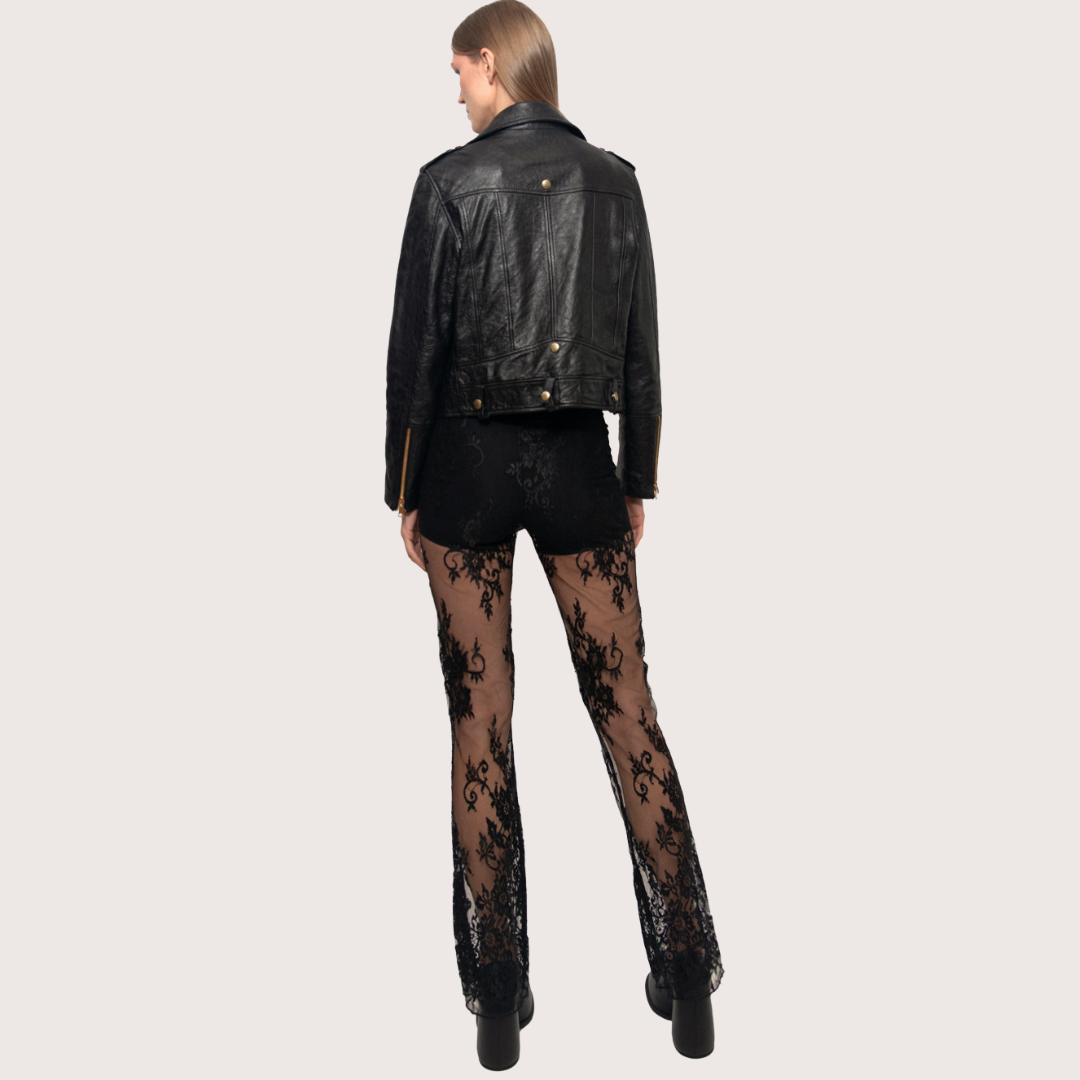 Chaqueta de piel a la cintura con textura avestruz, y detalles en dorado, que resaltan su construcción, para que al culminar todos los elementos se generé un básico único e interesante que todo clóset debería tener.