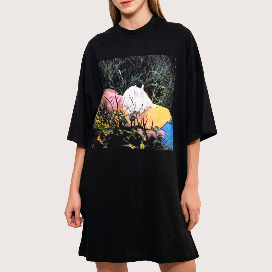 Oversized negra, con estampado de conejo prenda con fluidez y caída ideal para todo tipo de cuerpo, buscando darle un giro a lo casual.