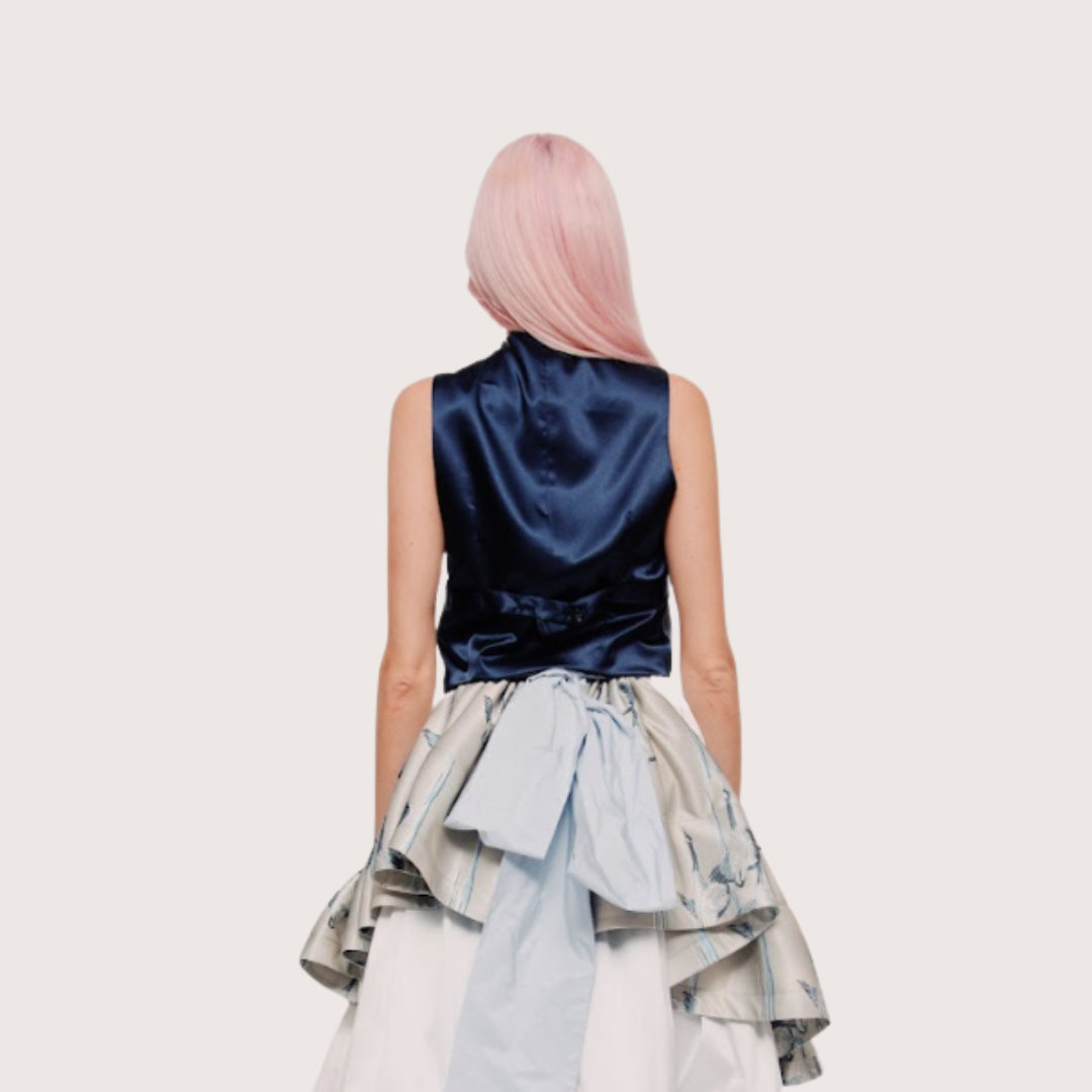 Chaleco estructurado oversized con solapa amplia que permite el juego de formas para usar