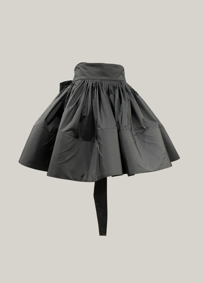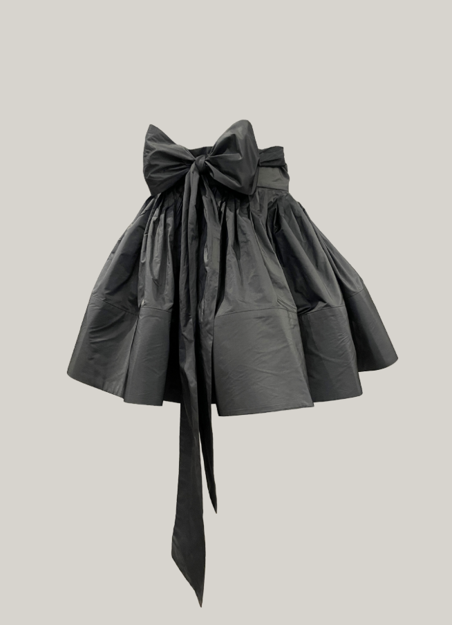 Falda envolvente de tafetán plomo con lazo XL – Claudia Álvarez x Alexia Ulibarri