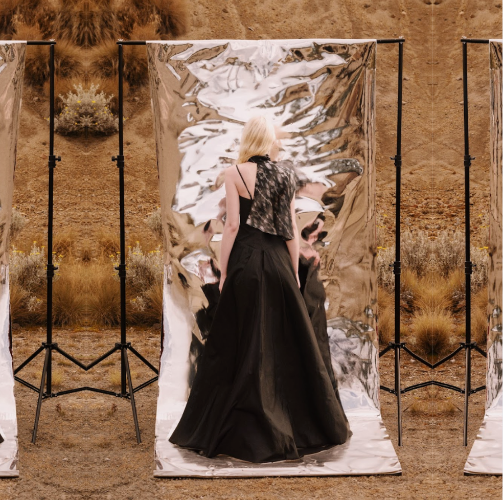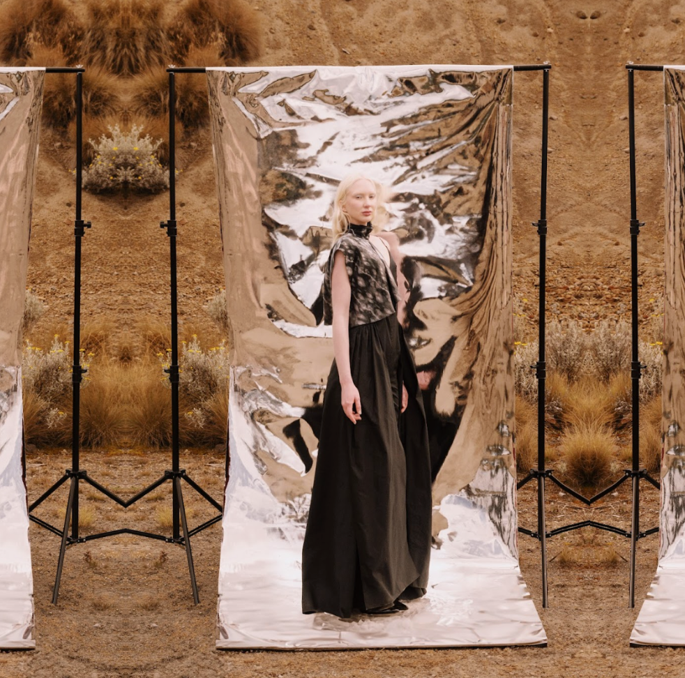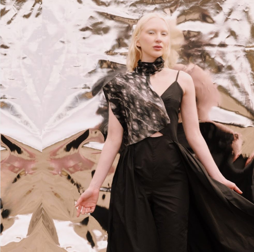 Mini Top de seda teñida a mano simulando las alas caídas de icáro, cuello alto con botones.