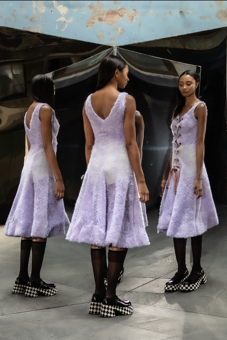 Vestido con textura de tull, detalles de corseteria y crin en bastilla para volumen.
