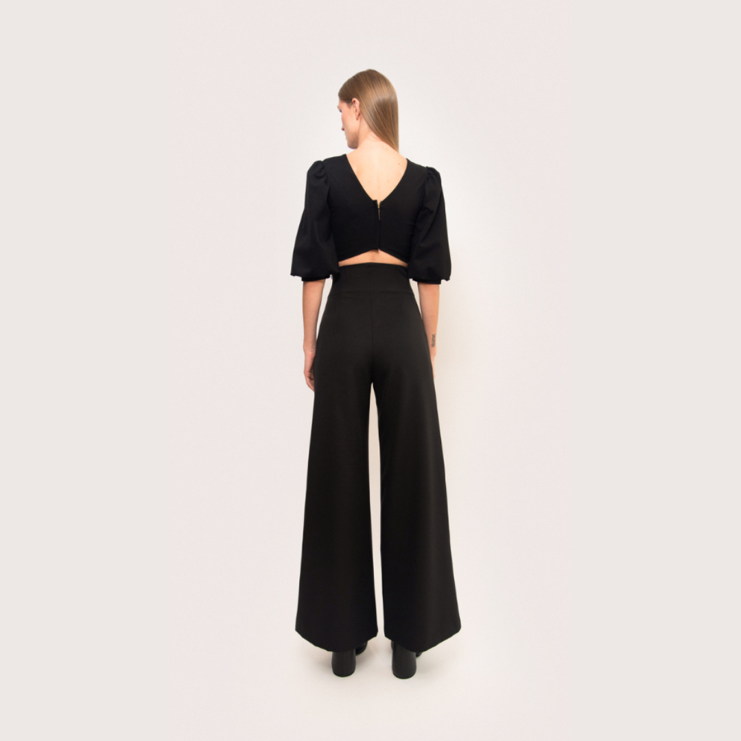 Cropped top con cierre metalico separable, mangas aglobadas/ Fit stretch para soporte y comodidad.