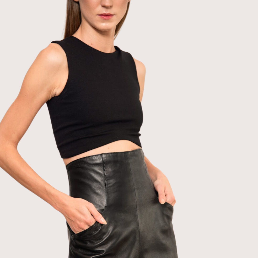 Cropped top con cierre metálico, sin mangas. Fit strech para soporte y comodidad
